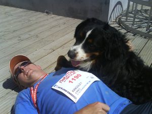 I think the picture says it all. That’s me at the finish of the Mont Blanc marathon, which I ran yesterday. It also explains the lack of blog posts in the last weeks, as I have been training loads for this race. It is a full marathon in length (42 km), but ascends over 2500m in height, and loses 1500m too, so yes quite a tough one. As you can see Maximus (my Bernese Mountain dog) came to see me at the finish (he was wise and took the cable car up to meet me). Anyway, happy enough with the time (7hrs 50mins), and haven’t ruled out doing it again next year – we will see. Today is a rest day, then back to guiding from tomorrow. Thanks to all who sent messages of support!