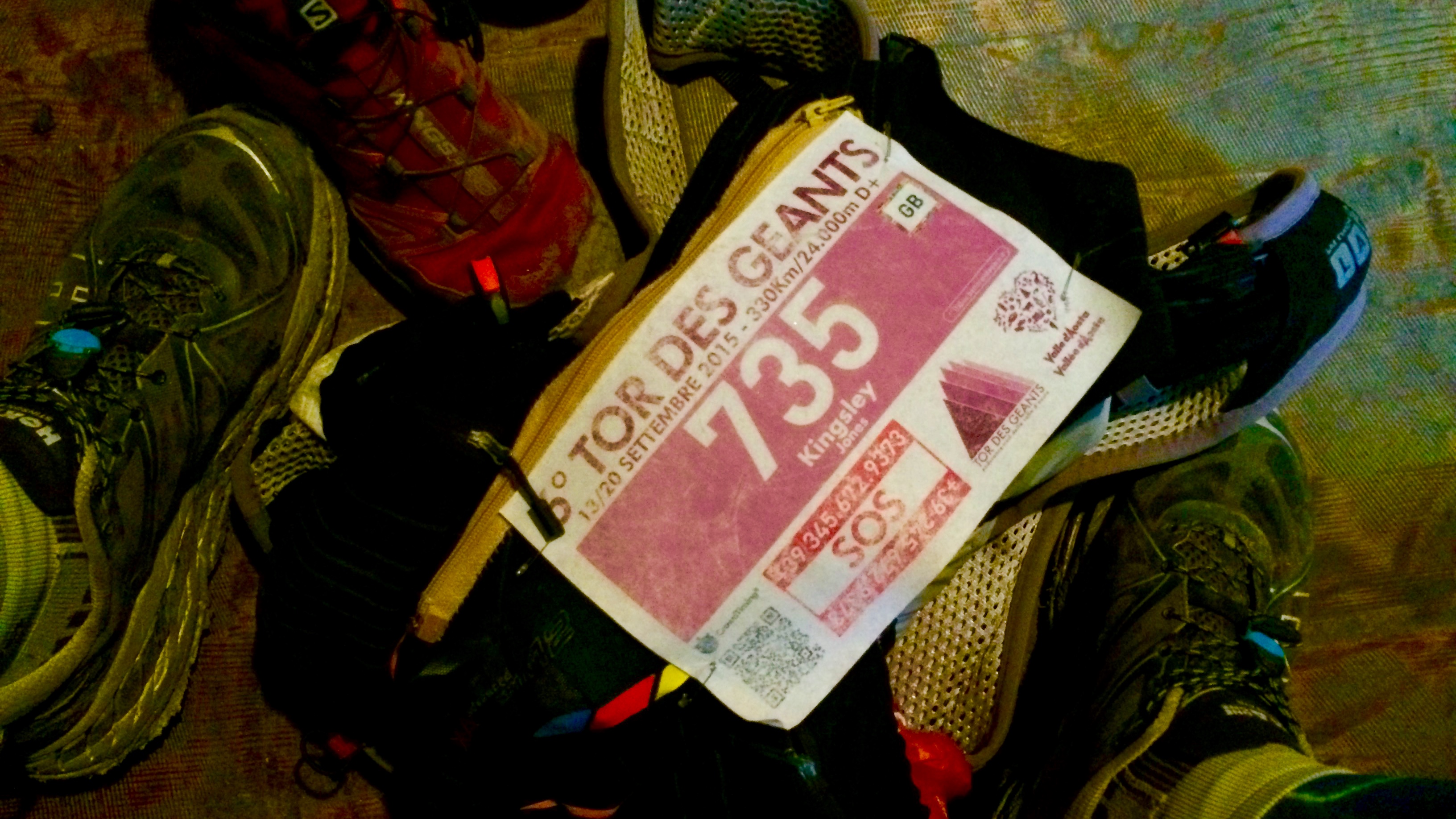 Where do you start with a blog about the Tor des Geants? The end seems as good a place as any. It’s marketed as the longest ultra trail in the world, at 330km with +24,000m height gain. This year was its 6th edition, and due to horrific weather the whole race was terminated when I’d run 222.5km with c.+16,000m vertical. All us survivors who had reached or passed the 200km point of Gresonney Saint Jean, were declared ‘finishers’, hence the all important jacket in the photo above.
